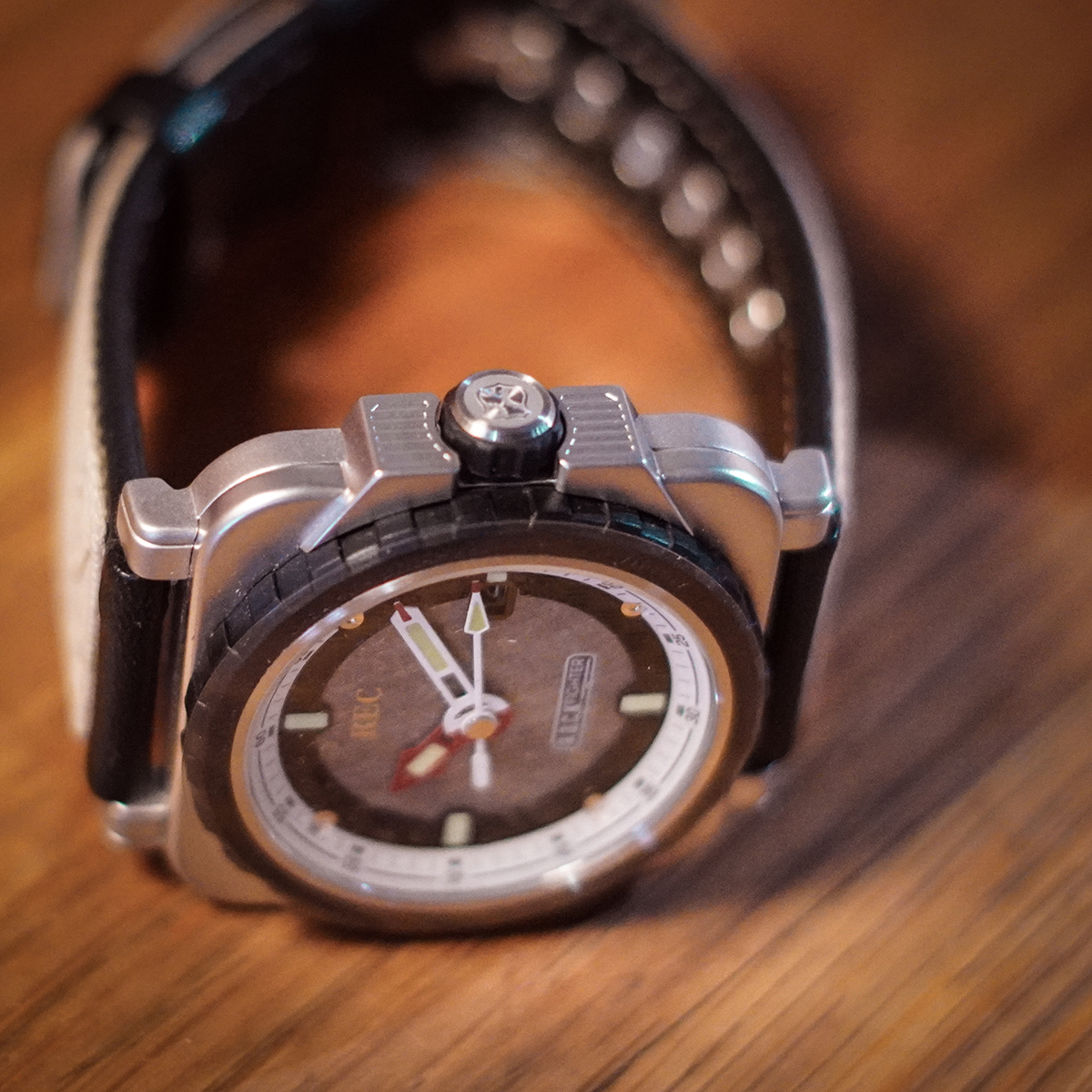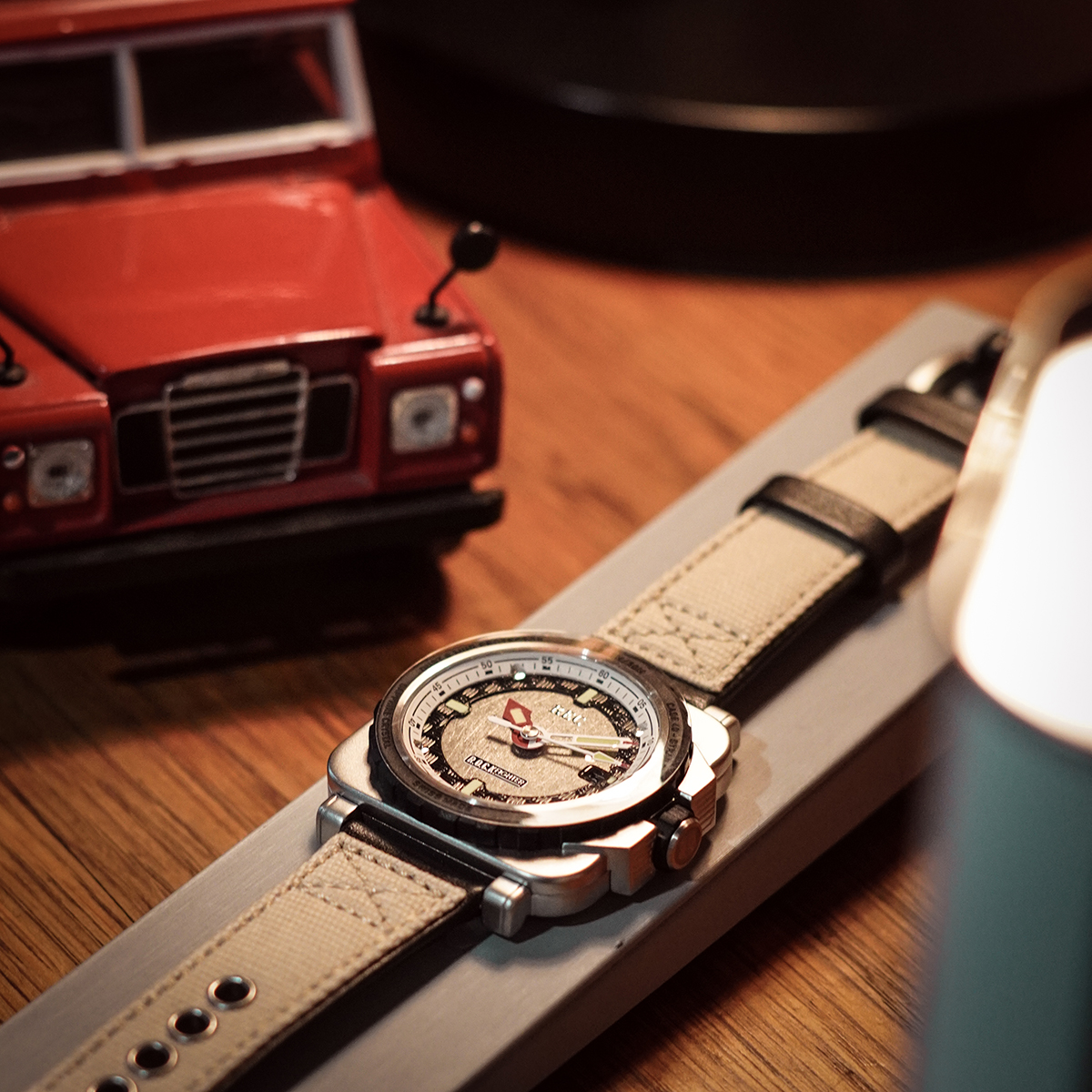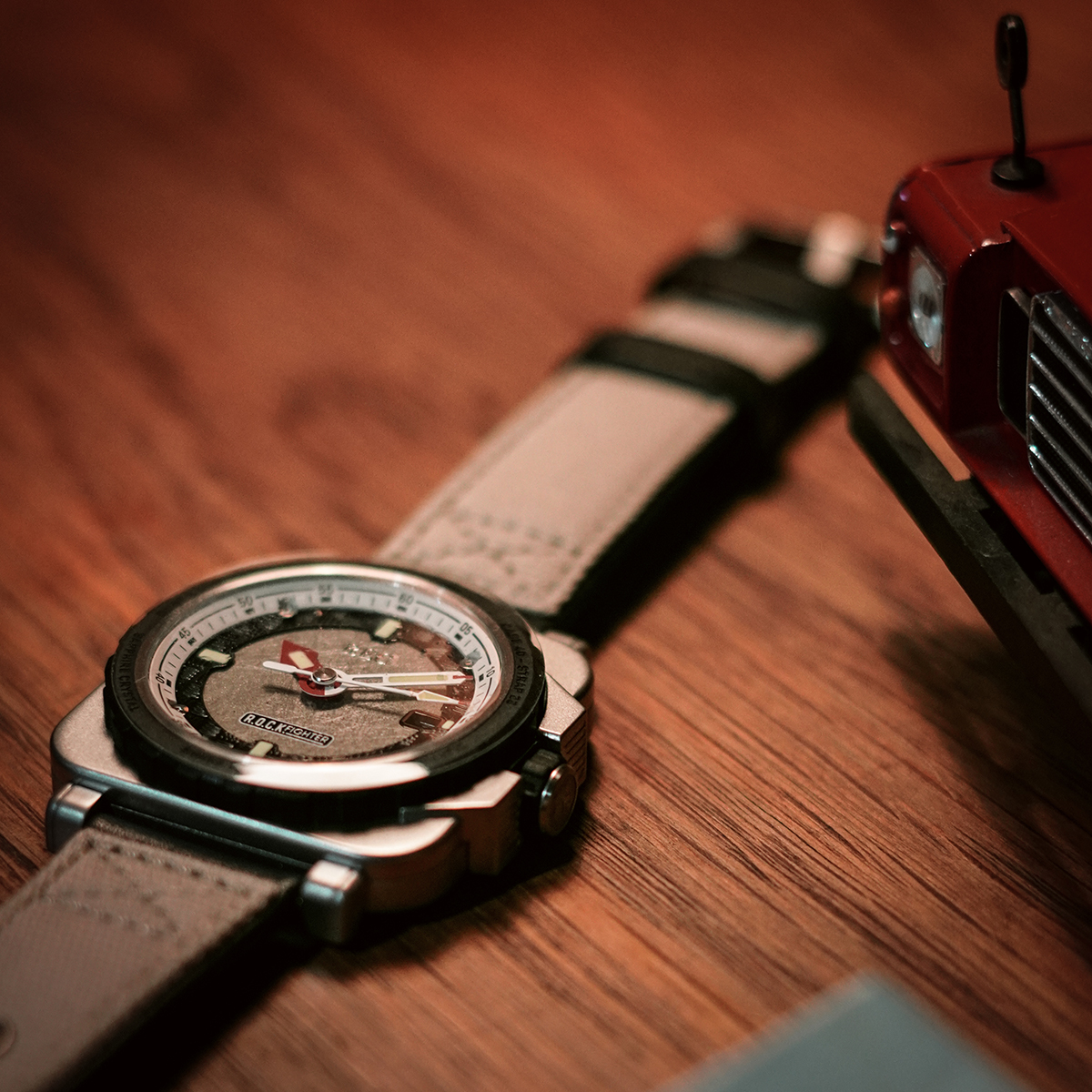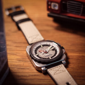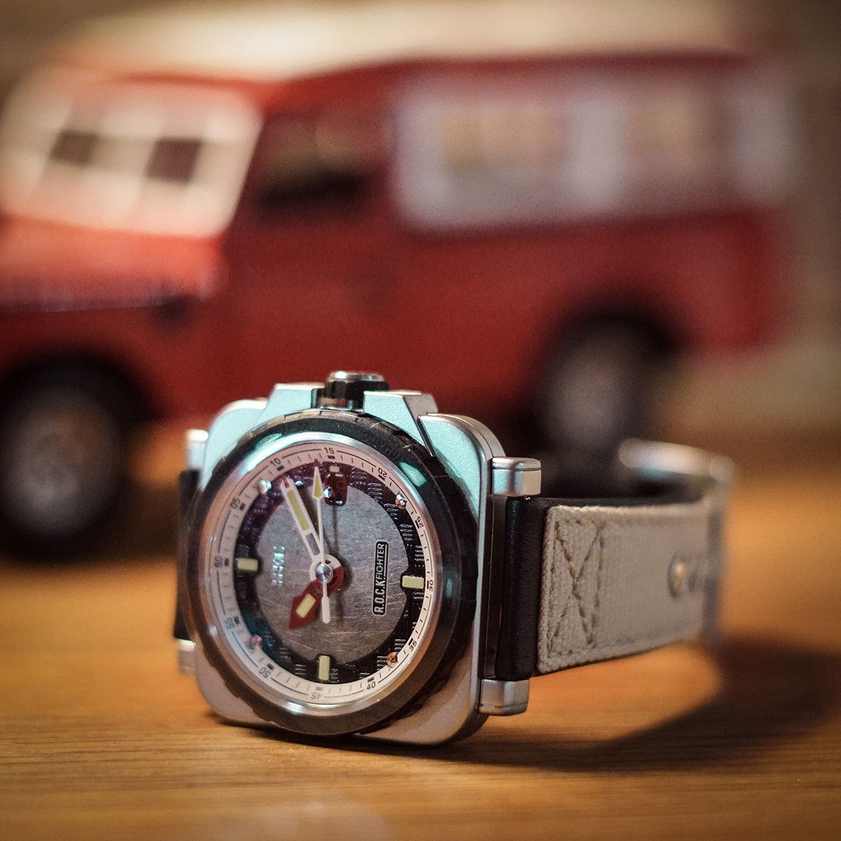 Handcrafted aluminum dial cut directly from ‘Rockfighter’ – a 2003 Land Rover Defender