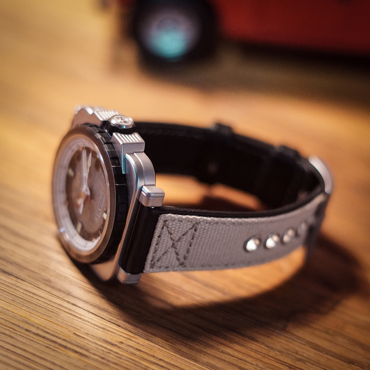 3-Piece case with sandblasted, vertical brushes and polished surface and rubber bezel (FKM, Fluorcarbon (Viton®))